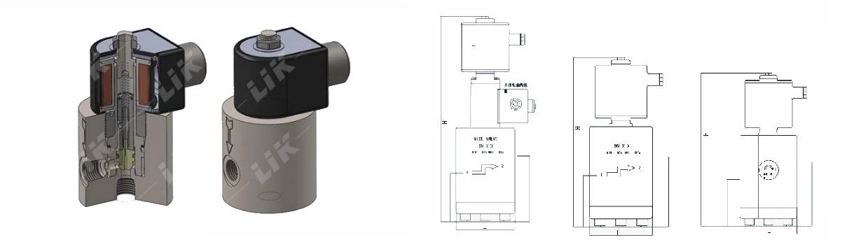 直動活塞式電磁閥原理:通電時,電磁線圈產生電磁力,直接吸合閥芯,閥芯提起。斷電時,電磁力消失,閥芯靠彈簧復位。