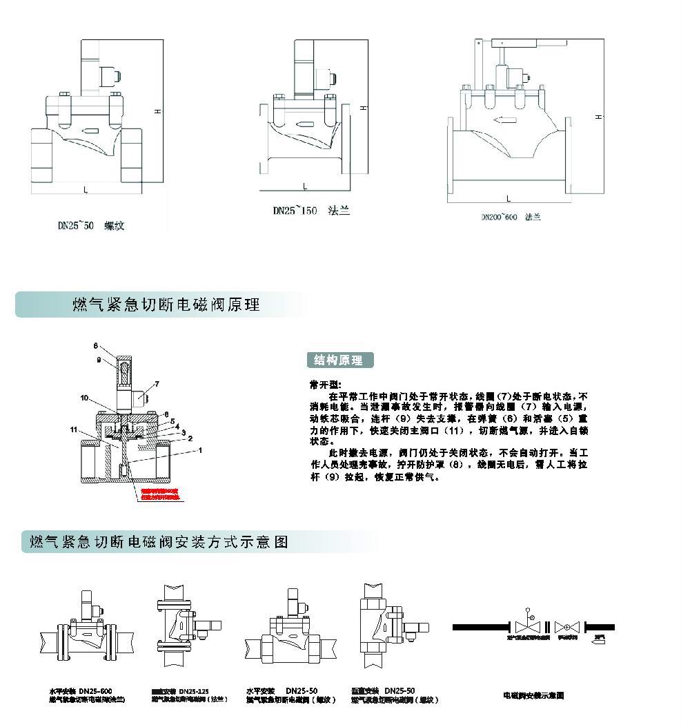 閥門失電后、迅速關(guān)閉;閥門再次通電,不會自動打開,必須靠手動拉起閥門,保持打開狀態(tài);節(jié)能、線圈保持功耗15W、溫度不超過10℃、可長期通電;密封性好、零泄漏。