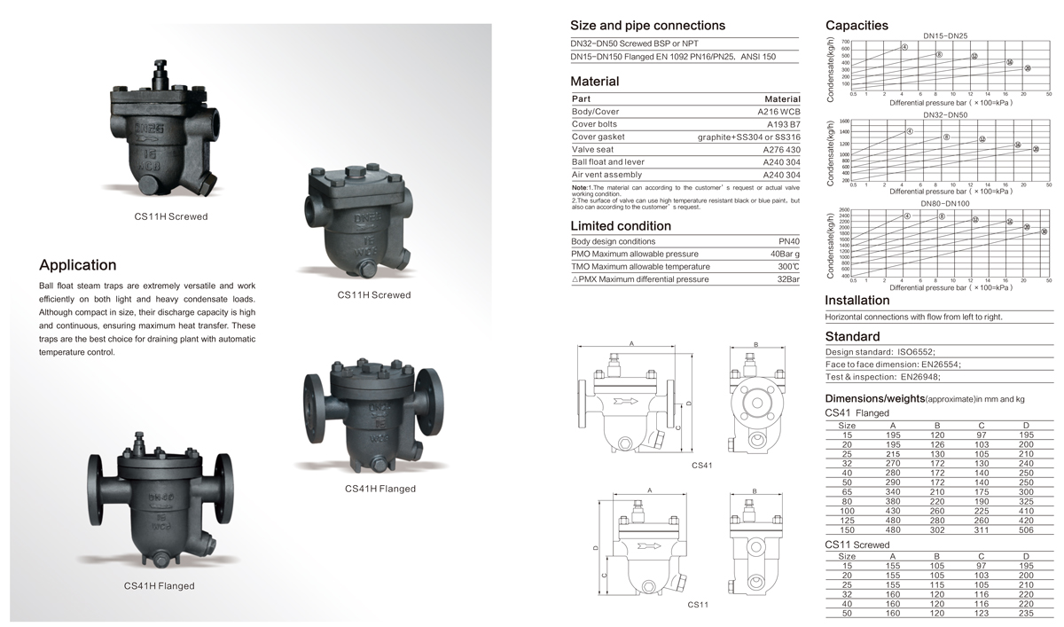 進口自由浮球式蒸汽疏水閥產品特點