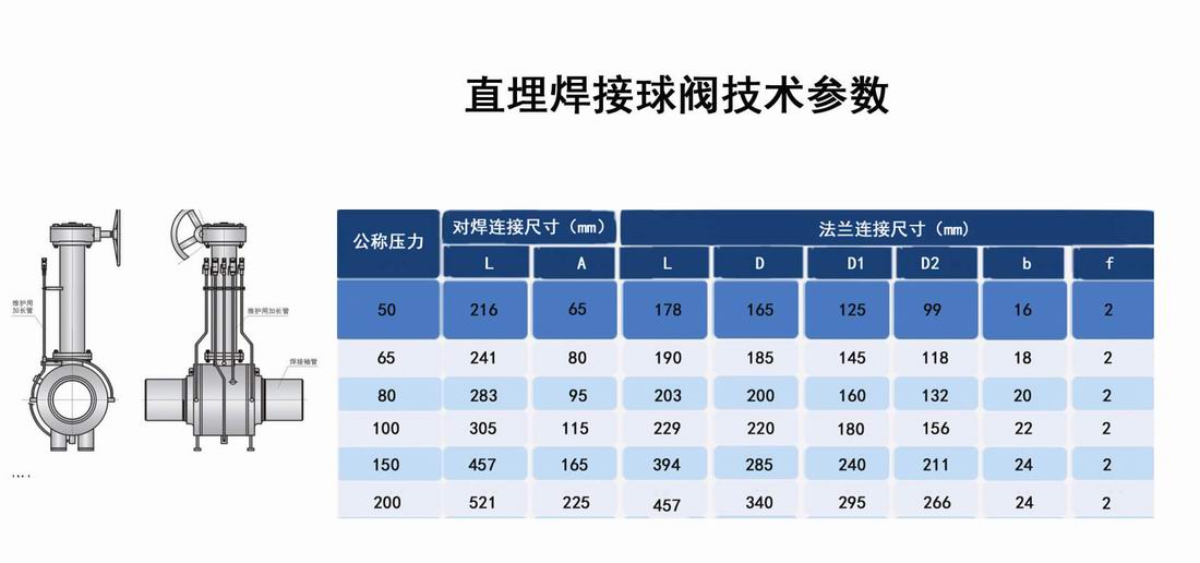 進口長桿直埋式全焊接球閥技術(shù)參數(shù)