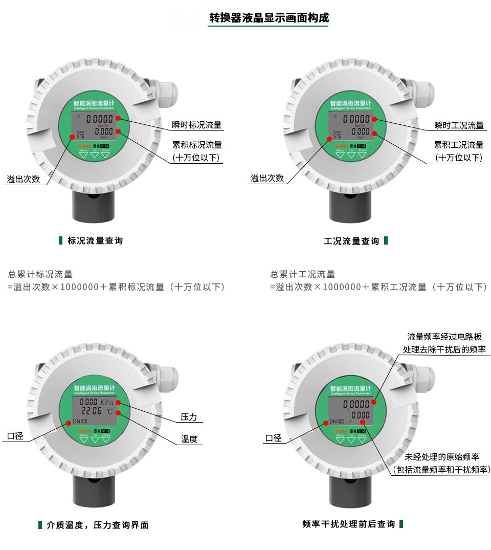 2、一體式溫度壓力雙補償,可直接在表頭上讀取補償后的瞬時流量和累計流量,溫度,壓力等數據;