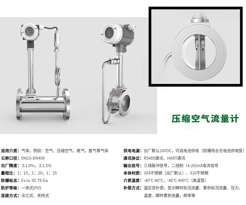 1、安裝方便,適用于壓縮空氣、氮氣,氬氣等氣體的測量;